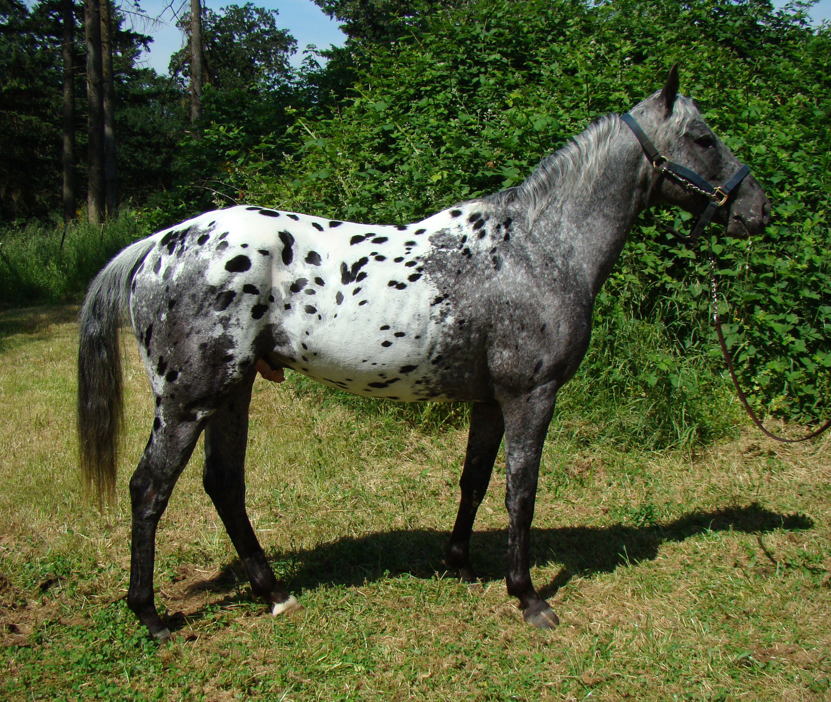 The Appaloosa is one of the most popular horse breeds in the United States, the country in which the breed was formed. It is chiefly a stock horse used in various western riding disciplines, but the Appaloosa tend to do well in many English riding disciplines as well. As a stock horse, it is well adapted to life on a ranch or farm where it gets to work livestock. The Appaloosa horse is famous for its striped hooves, mottled skin, white sclera, and the distinctive coat where a base color is overlaid by striking patterns. When the eye of a typical Appaloosa is kept in a normal position, white sclera is visible around the iris. A wide range of body types are represented within the breed, as a result of multiple horse breeds influencing the Appaloosas throughout their history in the United States. The Appaloosa breed is strongly associated with the Native American Nez Perce (Niimíípu) people and with the states of Washington, Oregon and Idaho, and was named official state horse of Idaho in 1975. Nowadays, the state of Idaho even offers a license plate sporting an Appaloosa horse.