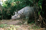 Even the most optimistic estimates suggest fewer than 100 Javan rhinoceros still remain in the wild; it is widely considered one of the most endangered extant species in the world, known to persist in only one place—Ujung Kulon National Park, Banten Province, on the western tip of Java Island. Like all other rhinoceros species, R. sondaicus was once far more widespread, ranging as far north and west as the Indian Subcontinent, from Assam and West Bengal states (and far East India, where their range would have overlapped with that of the Indian rhinoceros, as well as the historic range of the Sumatran rhinoceros)[19] and east through mainland Southeast Asia (Cambodia, Laos, Myanmar, Thailand, Vietnam). Its range continued further south through the Malay Peninsula (Malaysia, Singapore) and across the Strait of Malacca, to the Indonesian islands of Sumatra and Java, possibly extending northeast to include Borneo, as well as other potentially smaller islets.