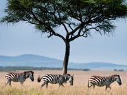 Plains zebras generally live in treeless grasslands and savanna woodlands, but can be found in a variety of habitats, both tropical and temperate. However, they are generally absent from deserts, dense rainforests, and permanent wetlands. Zebras also live in elevations from sea level to 4,300 m on Mount Kenya. They rely on rainfall for food and water, and go on great migrations to follow the rains. The zebras migrate up to 700 mi (1,100 km) for food. Other grazers also migrate. Plains zebras are highly water-dependent and are usually found within 25–30 km of a water source.