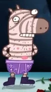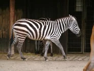 On average, plains zebras are smaller than the other two species of zebra. They range in height from 1-1.5 m (3.5-5 ft.) and can weigh almost 450 kg (1000 lbs.). Plains zebras also have a different stripe pattern than the other species. They have broad stripes that run horizontally towards the back and vertically towards the front, meeting in a triangle in the middle of their bodies. They also have a stripe that runs down the center of their backs onto the tail. Finally, plains zebras have underbelly stripes. Although all plains zebras share these similarities in stripe patterns, no two zebras have exactly the same pattern.